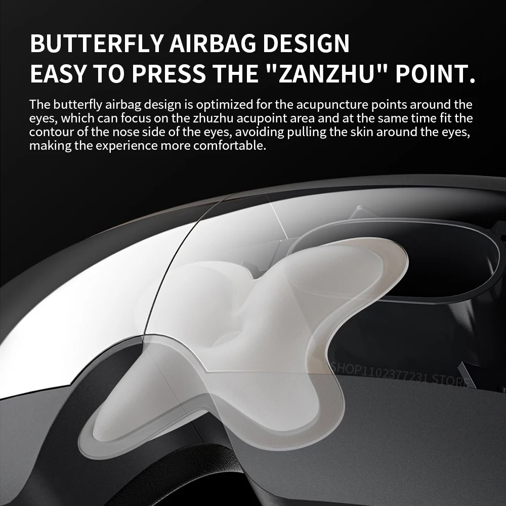 NOTE: This product version is for the China region. When adding Eye Massager , please select the Chinese server in the Mijia settings.How to connect to Mi Home App:Specifications:Product Model: MJYBAMO1YMYYRated Input: 5V⎓1ABattery Capacity: 1200mAhCharging Time: Approximately 2.5 hoursProduct Dimensions: 234 × 115 × 76mmProduct Net Weight: Approximately 370gFeatures:①Portable and lightweight design for on-the-go relaxation, weighing approximately 370g.②Efficiently rechargeable via Type-C cable in just 2.5 hours for uninterrupted use.③Features four-way elasticity with skin-friendly protein leather for a comfortable fit.④Offers customizable massage modes, including vitality boost and soothing decompression.⑤Equipped with NFC technology for instant connection and easy operation via smartphone.⑥Seven distinct massage zones, targeting key acupoints like Jingming and temples.⑦SPA-level mode for added comfort and relaxation.⑧Includes a comprehensive package with a travel bag and user manual for convenience and ease of use.Note:1. Please wear this product correctly, use it on the eyes, and wear it symmetrically on both sides.2. After continuous use of this product, there may be slight redness on the skin surface of the affected area, but no other discomfort, which is considered normal.3. Please keep the product out of reach of children.4. It is recommended to place the product in a dry and ventilated place to dissipate odors before use.Note: The illustrations of the product, accessories, user interface, etc., in the manual are for reference only. Due to product updates and upgrades, there may be slight differences between the actual product and the illustrations. Please refer to the actual product.MiJia Smart Eye MassagerEye Health Exercise* Hands-free Sectional Massage for Enhanced ComfortEye Health Exercise: Mimics the massage techniques of eye health exercises.New Eye Health Exercise Gameplay7-zone Design, with 4 Independent Air Valves for ControlButterfly-shaped Airbag DesignEffortlessly Massages "Jingming Acupoints"SPA-level Sensation MiJia APP Smart ControlSupports Customizable ModesVisualized Design for Eye AreaComfortable without Pressing on EyeballsProfessional DesignEnhanced Massage Experience for Greater ComfortFour Air Valves, Seven ZonesNew Eye Health Exercise ExperienceBased on the human eye structure, the massage area is divided into seven zones*, with four independent air valves controlling the massage, targeting eight major acupoints around the eyes*, providing a more comfortable "Eye Health Exercise" experience.3D Double-layer AirbagsThree-level Intensity AdjustmentDesigned according to the contour of the human eye area, featuring 5 sets of large airbags* overlaying 4 individual small airbags* for a more precise massage; adjustable in three intensity levels, giving you full control over the pressure.3D Double-layer AirbagsThree-level Intensity AdjustmentVisualized Design for Eye AreaComfortable without Pressing on EyeballsThe massager features an inner hollow design to avoid pressure on the eyeballs, with a semi-transparent visual window for easy handling of emergencies.*Images on the page are for illustrative purposes only. Actual product effects may vary. Please refer to the physical product for accurate representation.Butterfly-shaped Airbag DesignEffortlessly Massage "Jingming Acupoint"Specially optimized with the characteristics of eye acupoints in mind, the butterfly-shaped airbag design focuses on massaging the Jingming acupoint area while conforming closely to the contour of the nasal side of the eye, preventing excessive pulling of the skin around the eyes, resulting in a more comfortable experience.Intelligent InterconnectionEnriching the Massage ExperienceMiJia APP Smart ControlSay Goodbye to Complicated ButtonsOnce connected to the MiJia APP, the product allows for simple and quick control of the massager's operation status and massage modes through your smartphone.NFC Instant ConnectionQuick Massage EnjoymentAfter successfully pairing the massager with the MiJia APP, simply touch your smartphone to the NFC sensing area of the massager, and the phone will promptly open the app and directly navigate to the massager's control interface.Hands-free Eye Health ExerciseChoose from 10 Modes* as You PleaseOut of the box, 7 sets of modes are provided for personalized selection, offering targeted care for both eyes. Additionally, you can customize and store 3 sets of personalized modes via the MiJia APP. Modes from the app or personalized modes can be selected for offline use on the device*.Choose from 10 Modes as You Please:1. Vitality Boost2. Soothing Decompression3. SPA Mode4. Eye Health Exercise5. Morning Vitality6. Midday Relaxation7. Rhythmic Relaxation8. Custom Mode X3More Considerate Details:Four-Way Elasticity* Skin-Friendly Protein LeatherSoft, Comfortable, and Easy to CleanAdjustable Buckle DesignElastic Straps are Thick, Soft, and Flexible, allowing for Free Adjustment to Suit Different Head SizesFoldable DesignPortable and Easy to Store, for On-the-Go Massage EnjoymentHigh-Quality Low-Noise Air Valves≤50dB(A)*Voice PromptEasy Operation*7 Eye Area Zones: Upper Left Eye Orbit, Upper Right Eye Orbit, Lower Left Eye Orbit, Lower Right Eye Orbit, Both Sides of the Nose, Left Temple, Right Temple.*8 Major Eye Acupoint Areas: The markings of the 8 major eye acupoints in the image serve as approximate locations; exact positions may vary from person to person.*5 Sets of Large Airbags: Upper Eye Orbit Airbag, Lower Eye Orbit Airbag, Both Sides of the Nose Airbags, Left Temple Airbag, Right Temple Airbag.*4 Individual Small Airbags: 2 small airbags stacked on top of the upper eye orbit airbag (left upper eye orbit, right upper eye orbit positions) and 2 small airbags on the lower eye orbit airbag (left lower eye orbit, right lower eye orbit positions).*Three-level Temperature Adjustment: The heat compress function's activation/deactivation and tempera